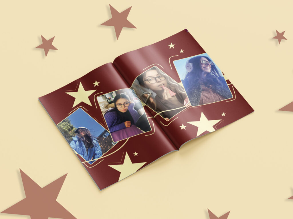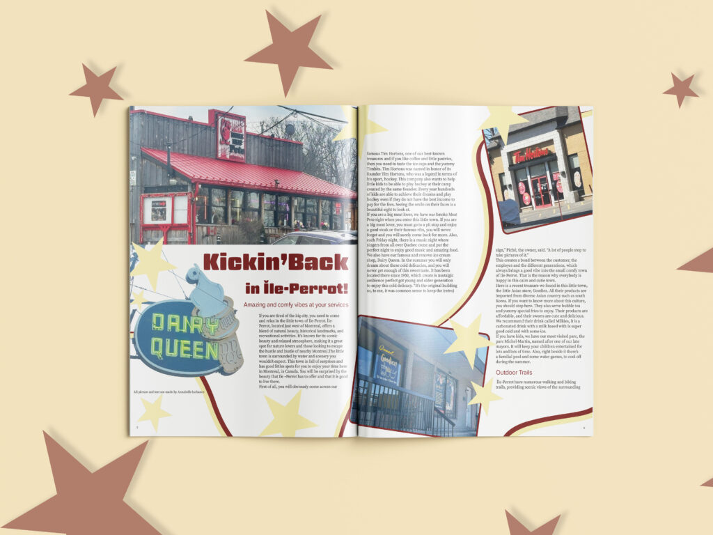 The color palette combines warm creams, deep reds, and soft browns, creating a retro-inspired, welcoming tone that feels nostalgic yet modern. Star motifs, rounded frames, and dynamic compositions add a playful, approachable identity while maintaining readability and structure. My design decisions were guided by research into youth-driven magazines and pop-culture visual trends, particularly how bold typography, expressive graphics, and immersive imagery keep younger audiences engaged.