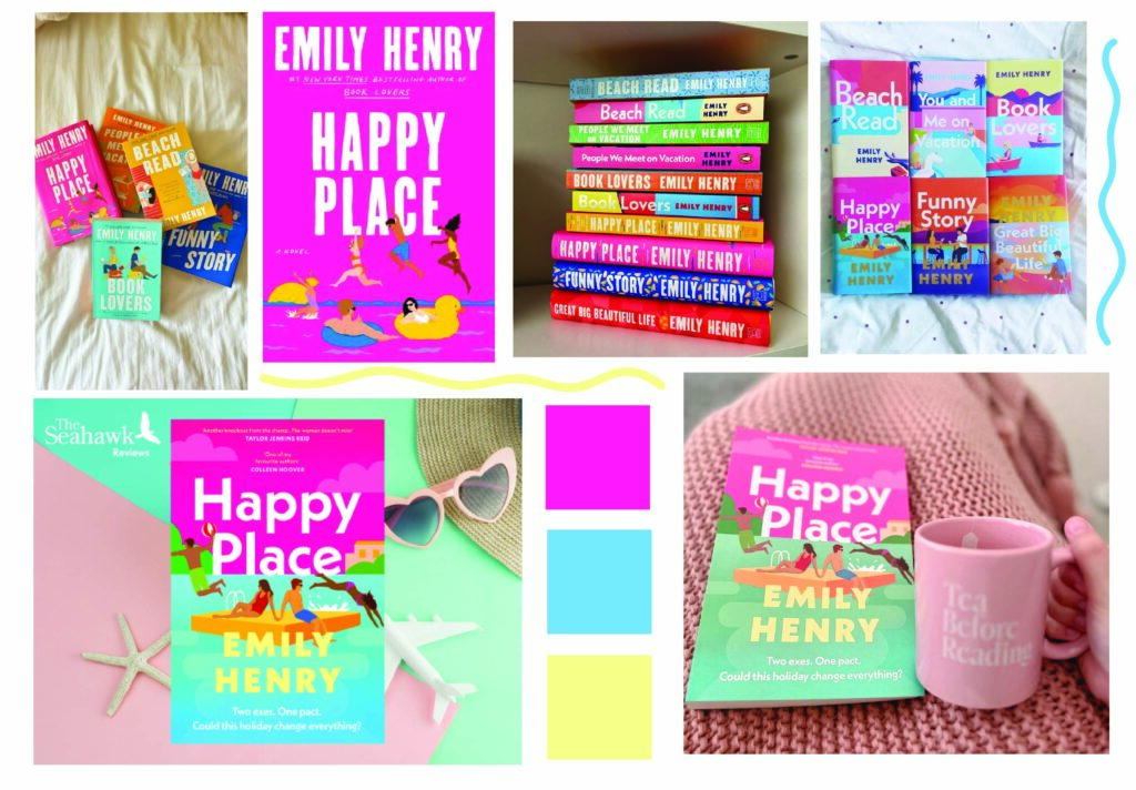 The moodboard combines bright, beachy imagery, bold pinks and blues, and snapshots of Emily Henry’s other book covers to establish a cohesive visual identity. It highlights the playful, summery aesthetic that characterizes her brand while emphasizing warm, uplifting storytelling. The selected color palette reinforces themes of joy, sunshine, and emotional lightness.