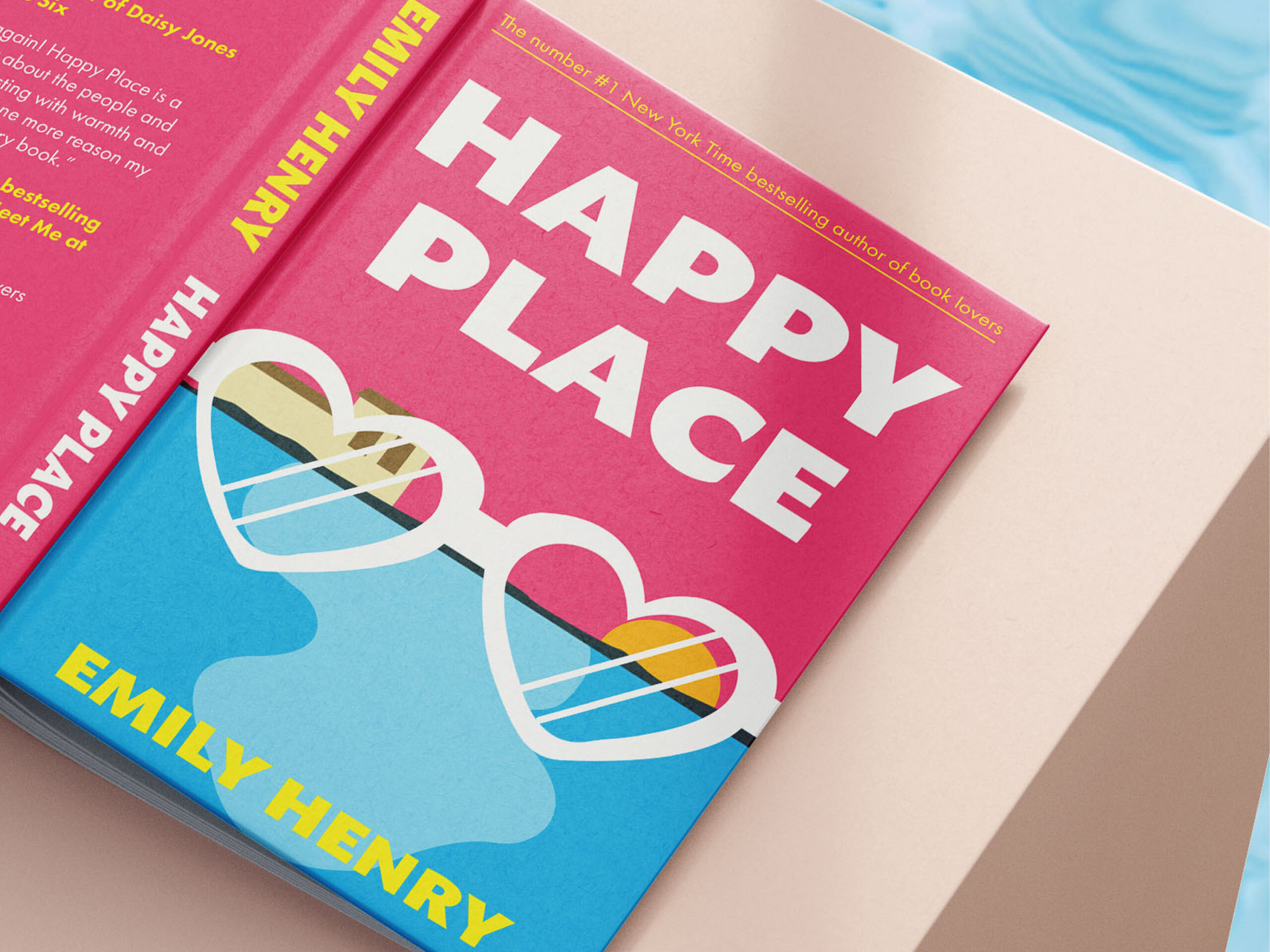 This project is a vibrant redesign inspired by Happy Place by Emily Henry, capturing the novel’s joyful, summery energy through bold colour, playful illustration, and a bright, modern layout. The design focuses on creating an instantly uplifting visual experience by using saturated pinks, warm yellows, and refreshing aqua blues colours that evoke sunshine, beaches, and the warm nostalgia of a perfect vacation. The cover illustration, featuring heart-shaped sunglasses reflecting a sunset, symbolizes both escapism and emotional warmth, which are central themes in the story. Clean geometric shapes, subtle waves, and rounded forms soften the composition and create a sense of movement, echoing the lighthearted rhythm of a summer romance.